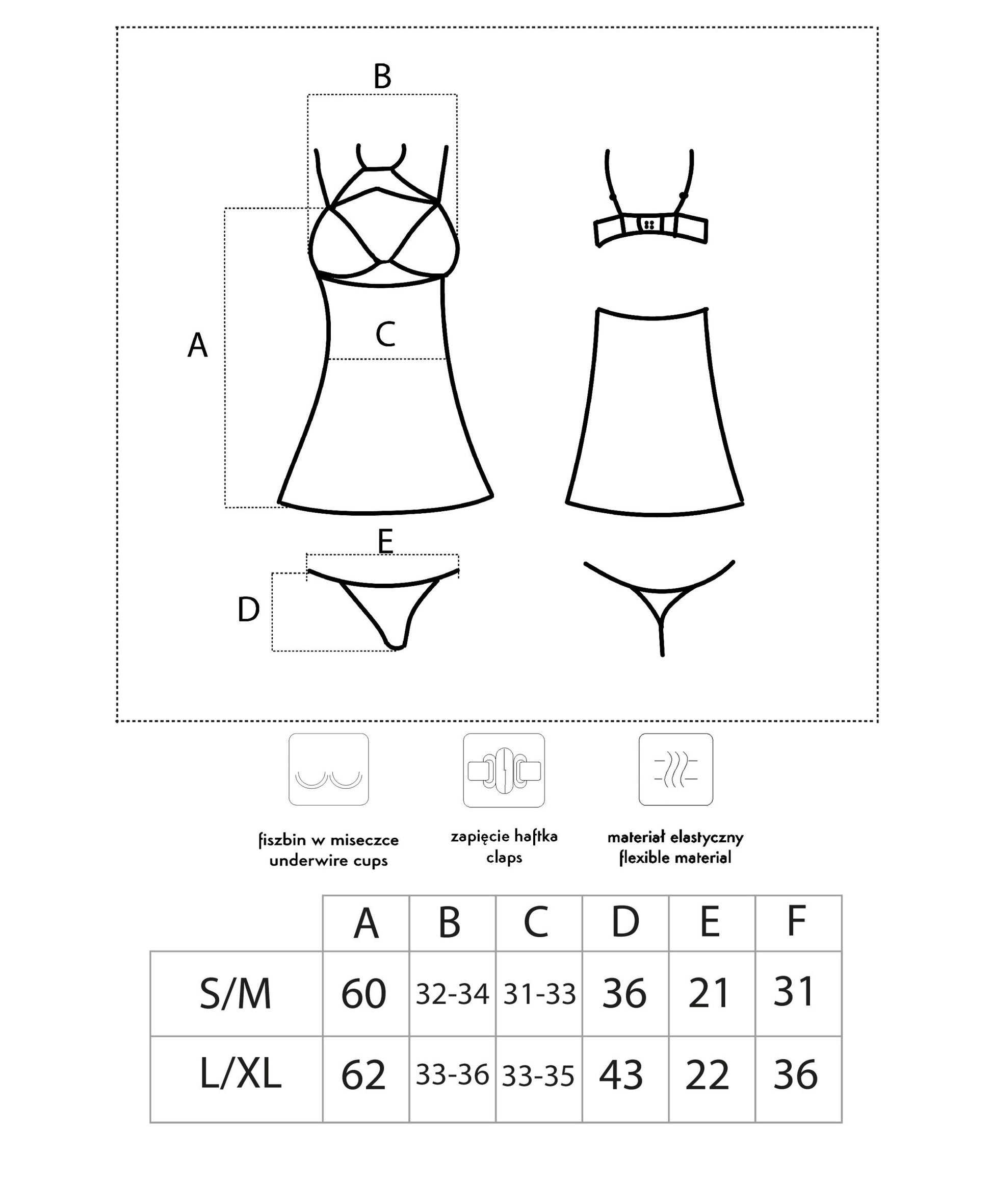 Do koszuli dołączone są dopasowane stringi, które dopełniają całości i sprawiają, że komplet prezentuje się wyjątkowo efektownie. Obsidian Kiss to doskonały wybór zarówno na romantyczne wieczory, jak i na chwilę relaksu, kiedy chcesz poczuć się pięknie i komfortowo jednocześnie.