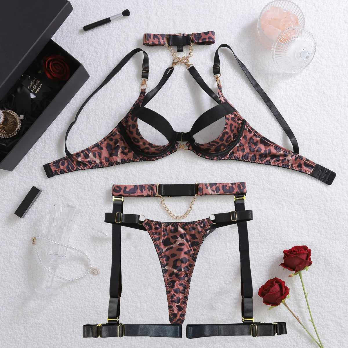 Sauvage Fatale to zestaw bielizny stworzony dla kobiet, które chcą przyciągać spojrzenia i dominować swoją zmysłowością. Połączenie drapieżnego motywu w stylu animal print z głęboką czernią tworzy wyjątkowy, uwodzicielski efekt. Złote łańcuszki i biżuteryjne detale dodają całości luksusowego charakteru, podkreślając wyrazisty styl zestawu.